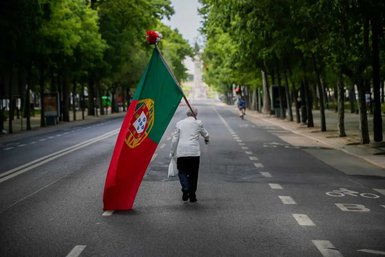 25 de Abril de 2020 - Homem desfila sozinho na Avenida da Liberdade